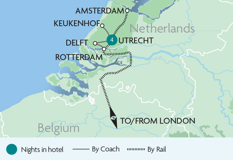 Experience the joys of spring in the Netherlands on this glorious break featuring world-famous gardens, picturesque canals and windmills. Based in the attractive city of Utrecht, our holiday is packed with excursions to enchanting locations, including the stunning Keukenhof Gardens - with its swathes of multi-coloured spring flowers - a guided...