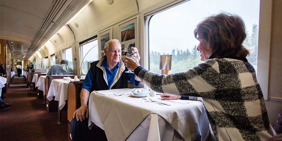 During your time on The Canadian, all meals are served in the elegant Sleeper Plus Class dining car and are included in the price of your holiday. Food is freshly prepared by the on-board chefs and local ingredients are used where possible. An all-Canadian wine list is available for an additional fee.