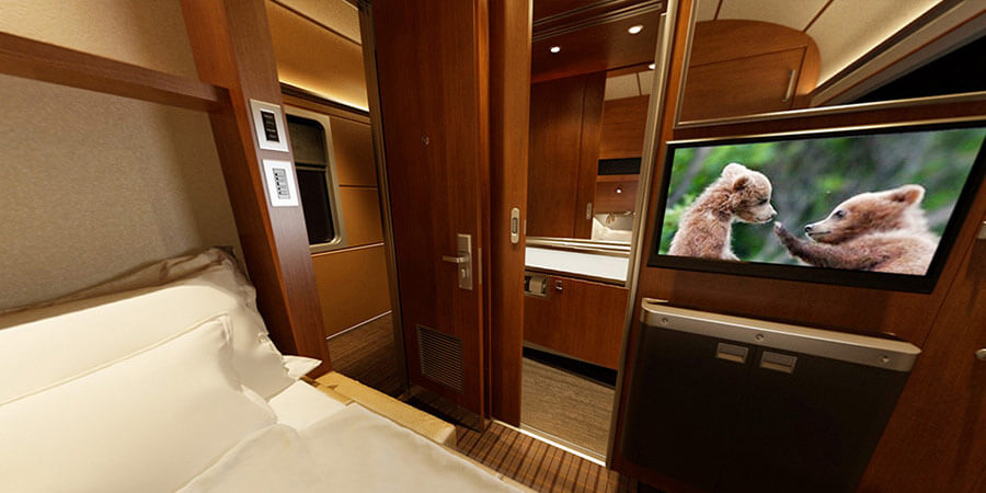 Experience old-world elegance in your private cabin with a modular sofa which converts to a full-size double bed, a private bathroom with a shower, and a flatscreen TV with a selection of films. You also enjoy personal concierge services and unrestricted access to viewing cars. Prestige Class gives you priority boarding, reserved seating in the Park car, Panorama car and Dining car. Gourmet meals, snacks and bar service are included during your journey.